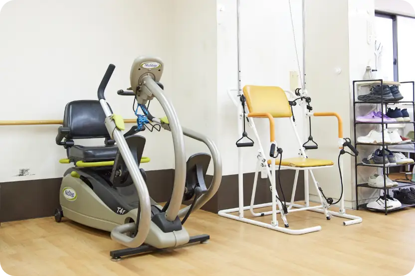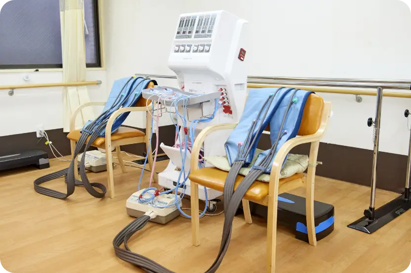 専用のマシーンを使用して、筋力の維持・向上を目的としたリハビリトレーニングを行います。